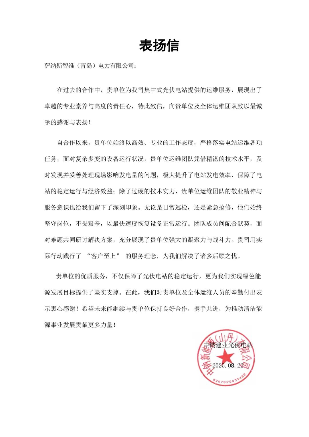 光伏人必看!2封表扬信,说透业主真正在意的事