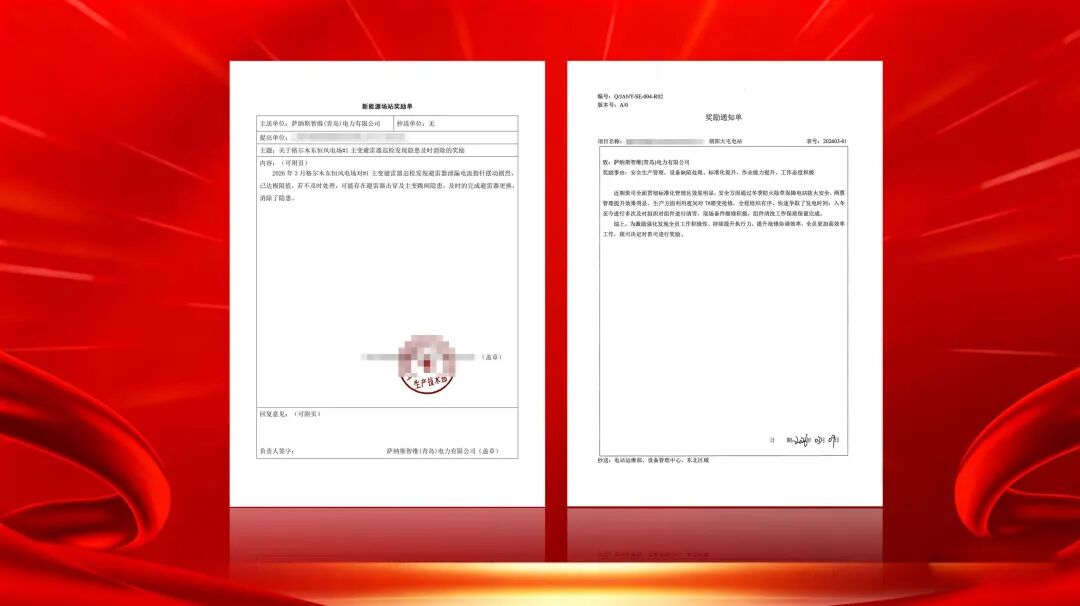 近日,风暴娱乐(青岛)电力有限公司凭借严谨的安全生产管理、高效的设备缺陷处置能力、扎实的标准化运维水平以及积极负责的工作态度,接连获得业主单位的正式表彰与奖励,用专业实力收获认可,以责任担当守护能源安全。
