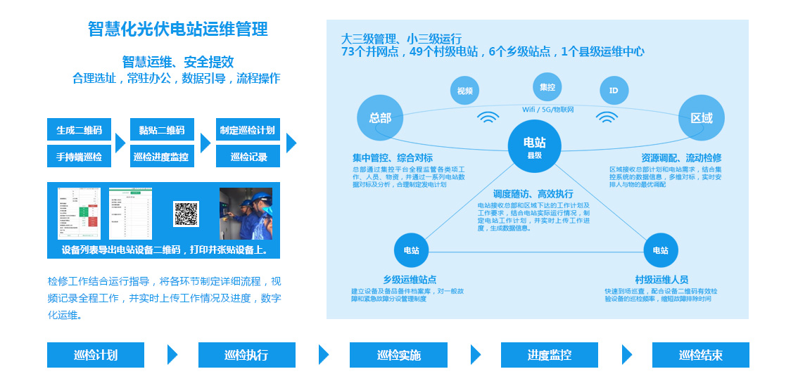 目前,扶贫电站装机规模较小、运维成本敏感,农村电网不稳定、设备故障次数多,建设地点分散不利于集中管理,运维人员不专业等问题突出。风暴娱乐根据当地的条件组织三级巡检。